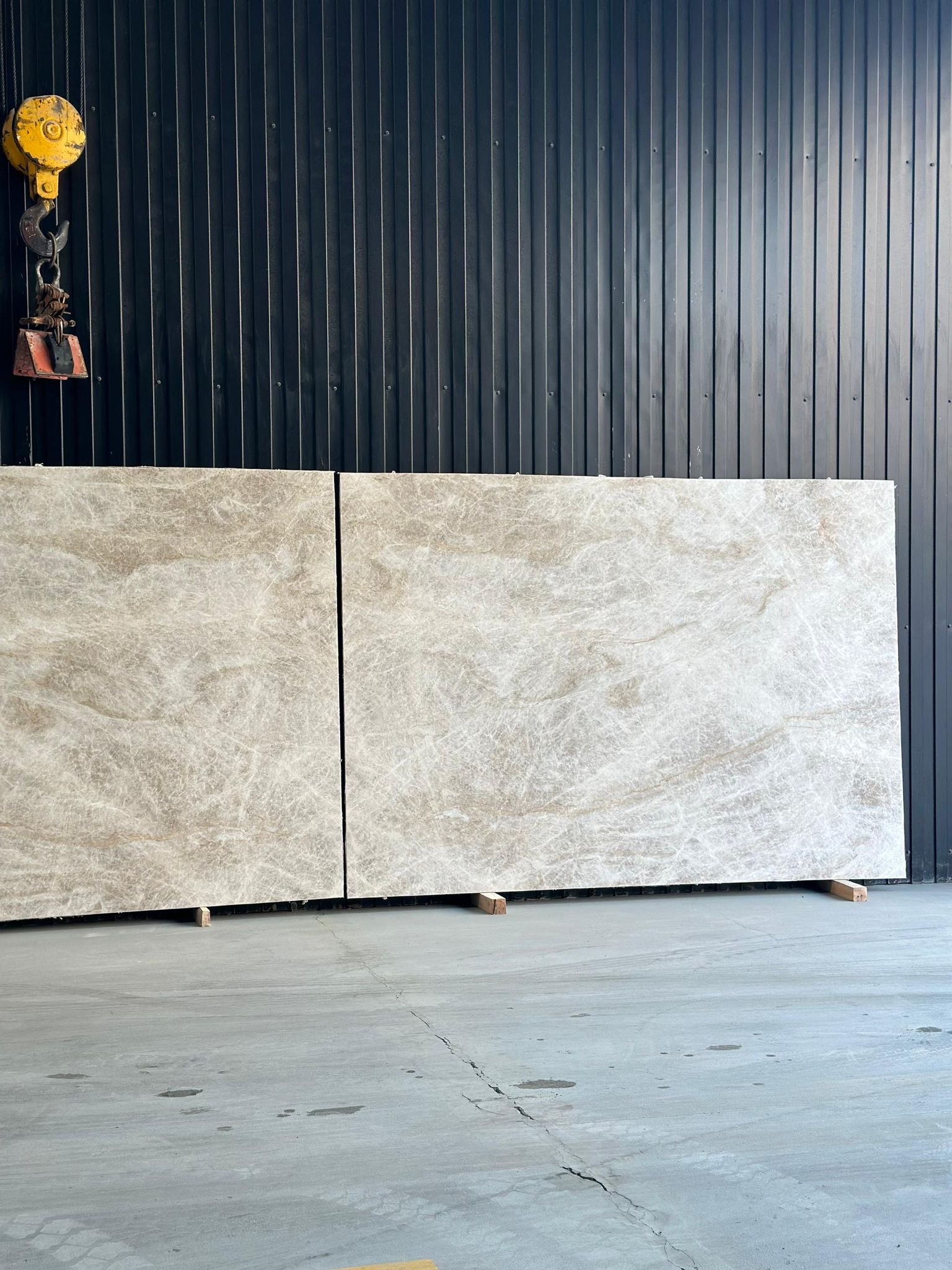 Quarried in Brazil, Taj Mahal Quartzite is a versatile stone that seamlessly complements various aesthetics. Its creamy, tan, and white hues are adorned with delicate layers of white, amber, and gold, forming a subtle yet captivating pattern that exudes elegance and sophistication.
