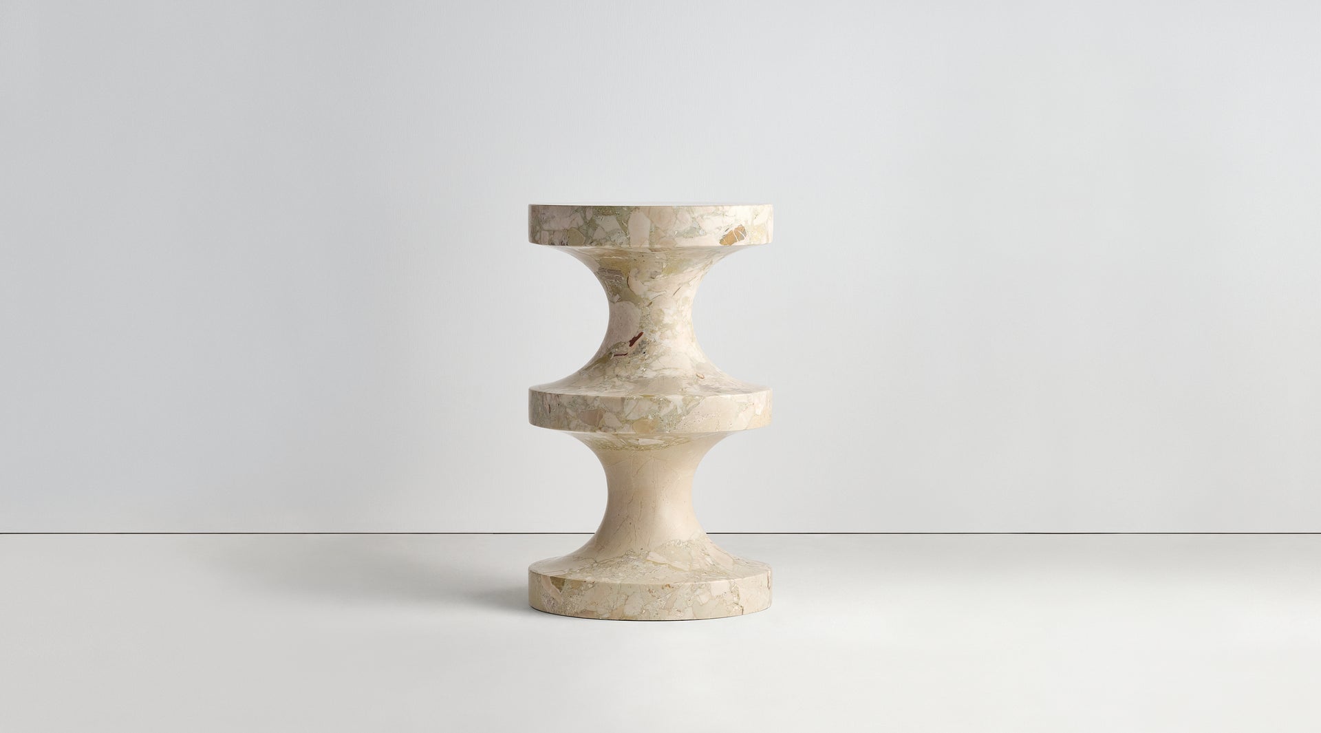 Yoyo embodies refined elegance through its dual functionality and exquisite materiality. Hand-sculpted from a singular block of Italian Breccia Sicilia Rose marble, this piece marries aesthetic sophistication with purposeful design. The stone's distinctive rose and terracotta palette, enriched by delicate veining, creates a surface of considerable visual depth.