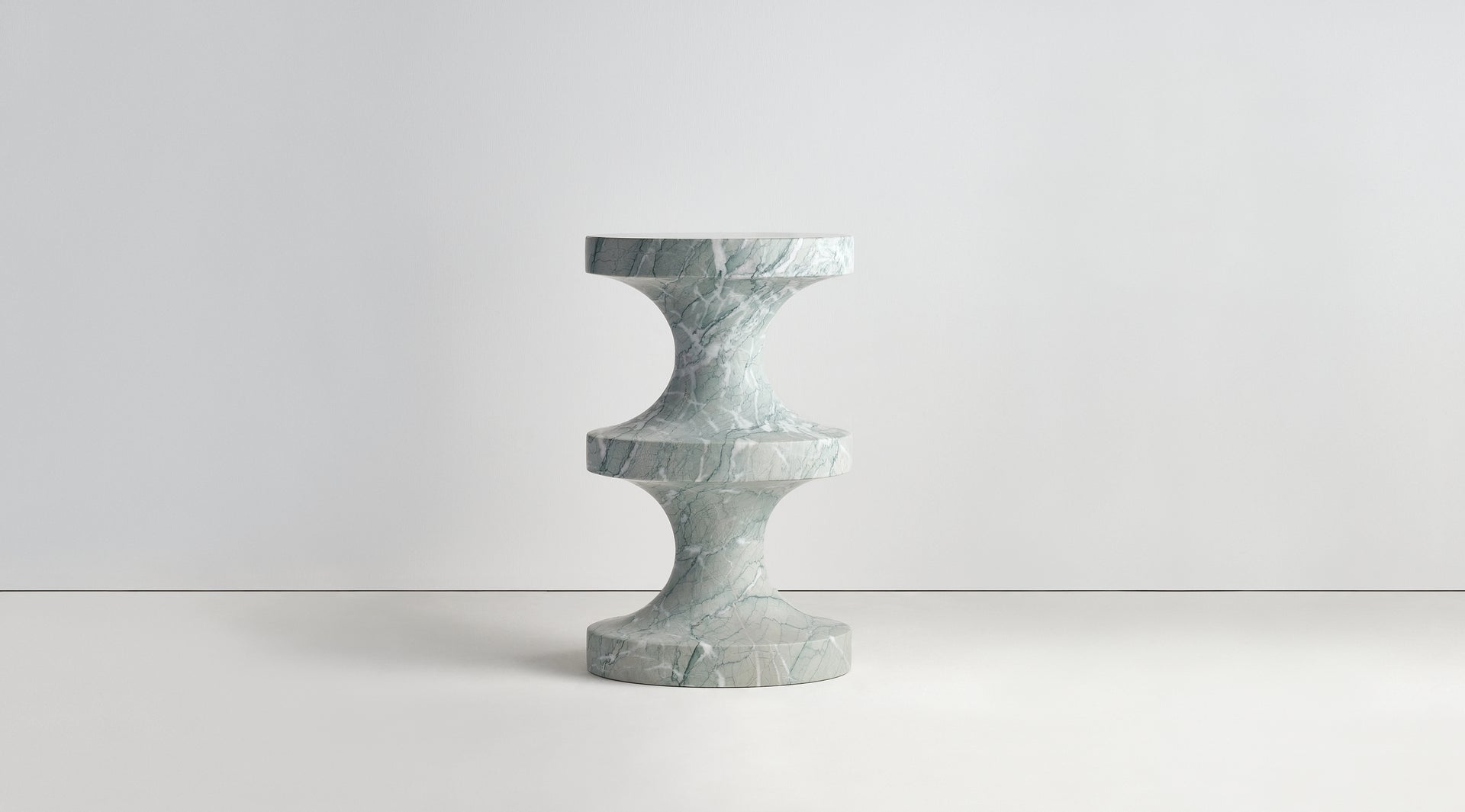 Yoyo is a sophisticated dual-purpose piece handcrafted from a single block of Iranian Verde Antigua marble. This elegant stool transitions effortlessly between seating and side table, making it an intelligent addition to contemporary interiors.